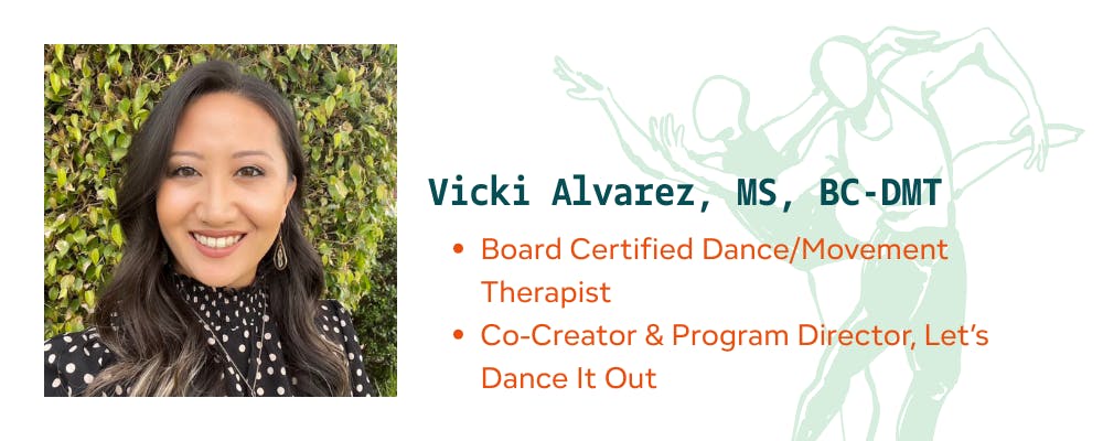Born and raised in San Francisco, Vicki Alvarez began dancing at a young age, training in multiple styles and performing on platforms like America’s Got Talent and So You Think You Can Dance. She holds a BA in Psychology with a minor in Dance from Cal State Northridge and an MS in Dance/Movement Therapy from Pratt Institute. As a board-certified dance/movement therapist, Vicki has worked with diverse populations—from children to seniors with dementia. She is the co-creator and program director of Let’s Dance It Out, a therapeutic dance/movement program for teens and adults with intellectual and developmental disabilities. Guided by the belief that the body is the unconscious mind, she uses movement as a powerful tool for deepening connection, empowering individuals, and promoting healing throughout communities.