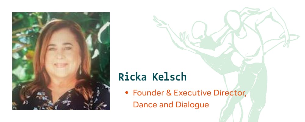 Ricka Glucksman Kelsch is the Founder and Executive Director of Dance and Dialogue. She started her dance, choreography and teaching career while still in college at UCLA. Additionally, she studied with Jaime Rogers, Joe Tremain, Claud Thompson, Joe Bennett, Jackie Sleight, and Billy Goodson, to name a few. She spent most of her time studying at the Roland Dupree Dance studio assisting Hama, and studying with Roland Dupree, and other amazing teachers on staff. She was one of the handful of dancers sent out from the studio for auditions and work.