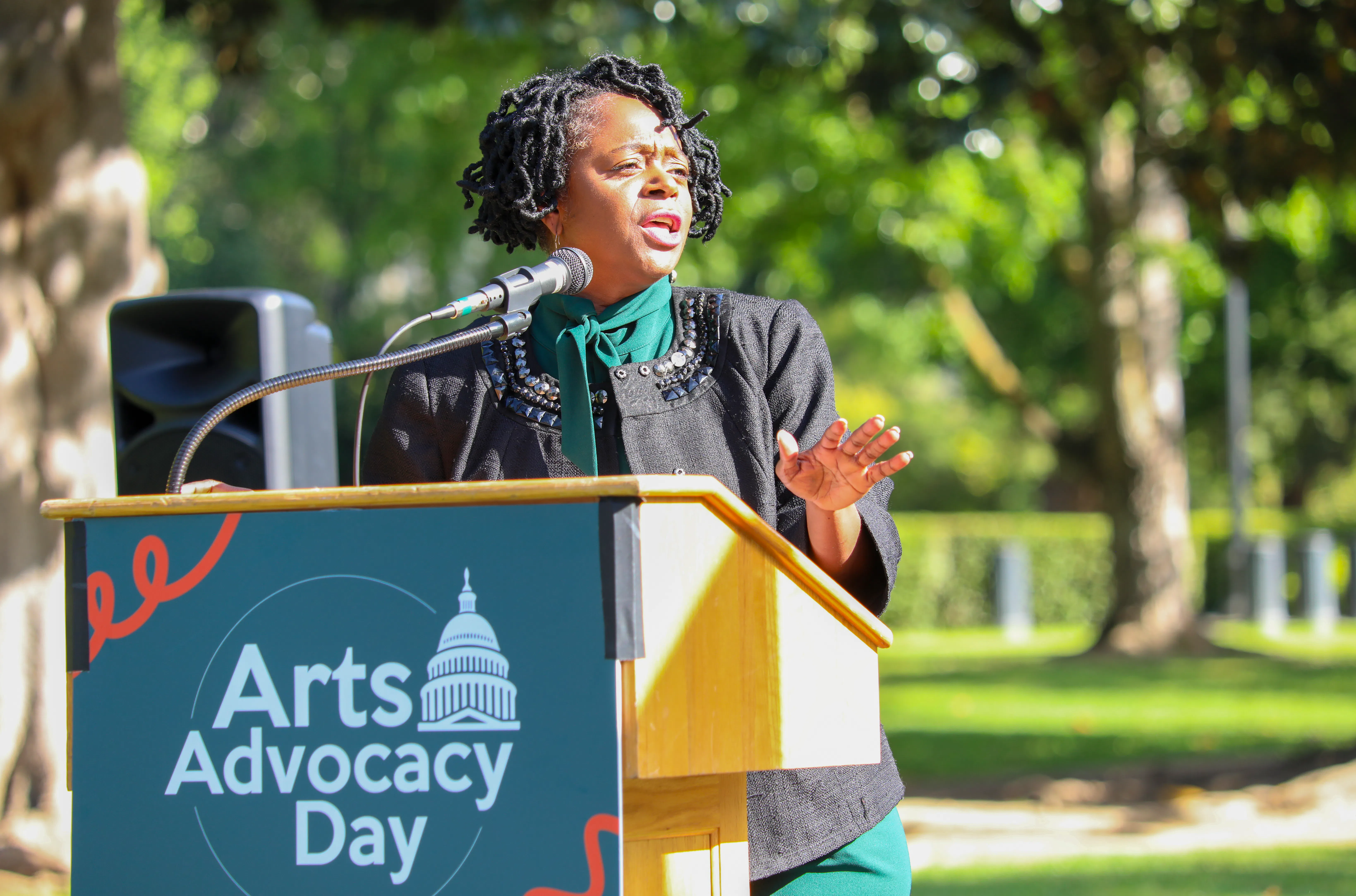 Senator Lola Smallwood-Cuevas speaking during Arts Advocacy Day in 2025. Photo: Alan Sheckter