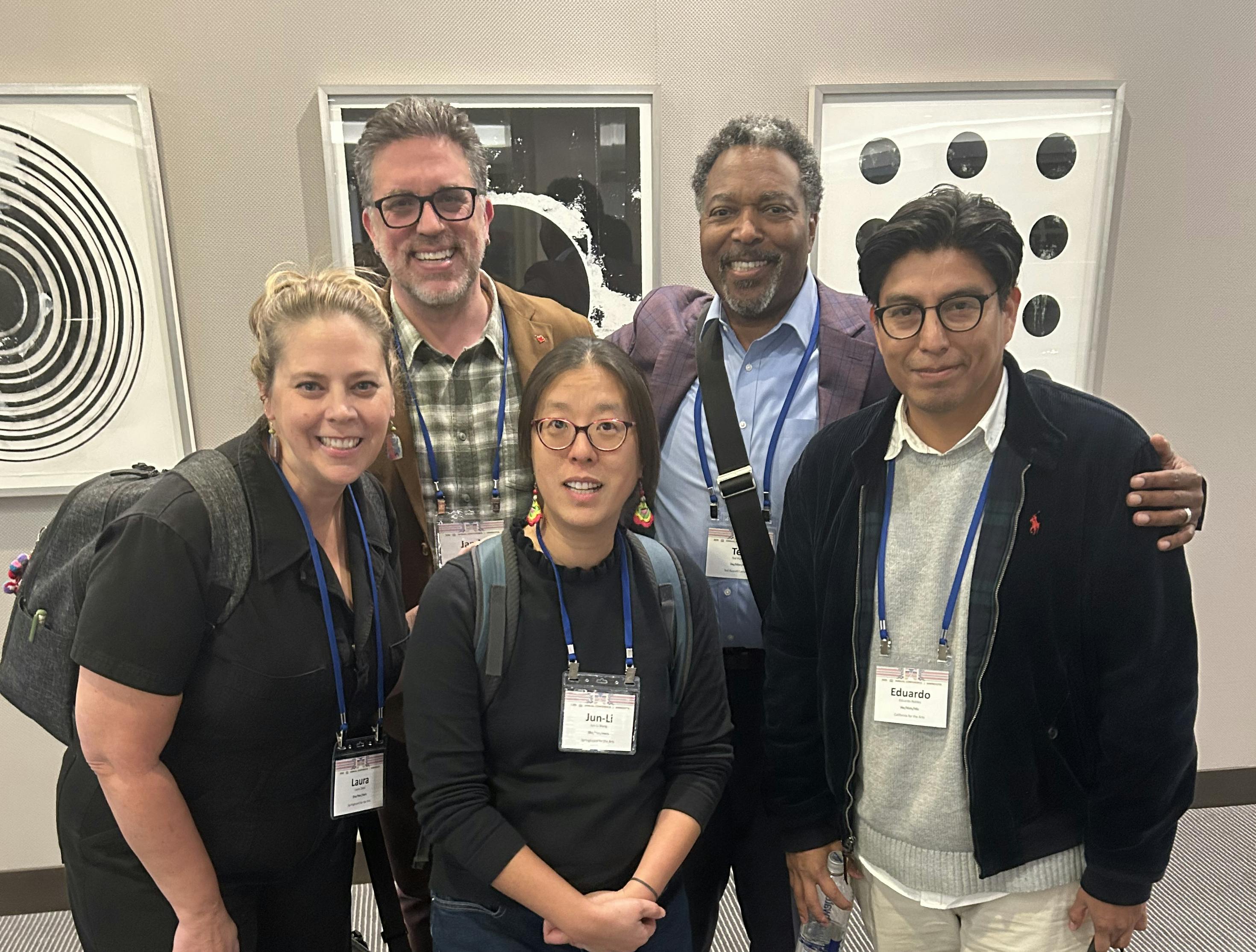 Left: Front: Laura Zabel (Executive Director, Springboard for the Arts), Jun-Li Wang (Associate Director, Springboard for the Arts), Eduardo Robles (Communications Director, California for the Arts). Back: Jamie Bennett (Lord Cultural Resources), Ted Russell (Program Consultant Lead, California for the Arts). Right: Rudy Guglielmo Jr. (Grantmaking Officer, Bush Foundation), Roberto Bedoya (Writer, Cultural Strategist), Eduardo Robles (Communications Director, California for the Arts).