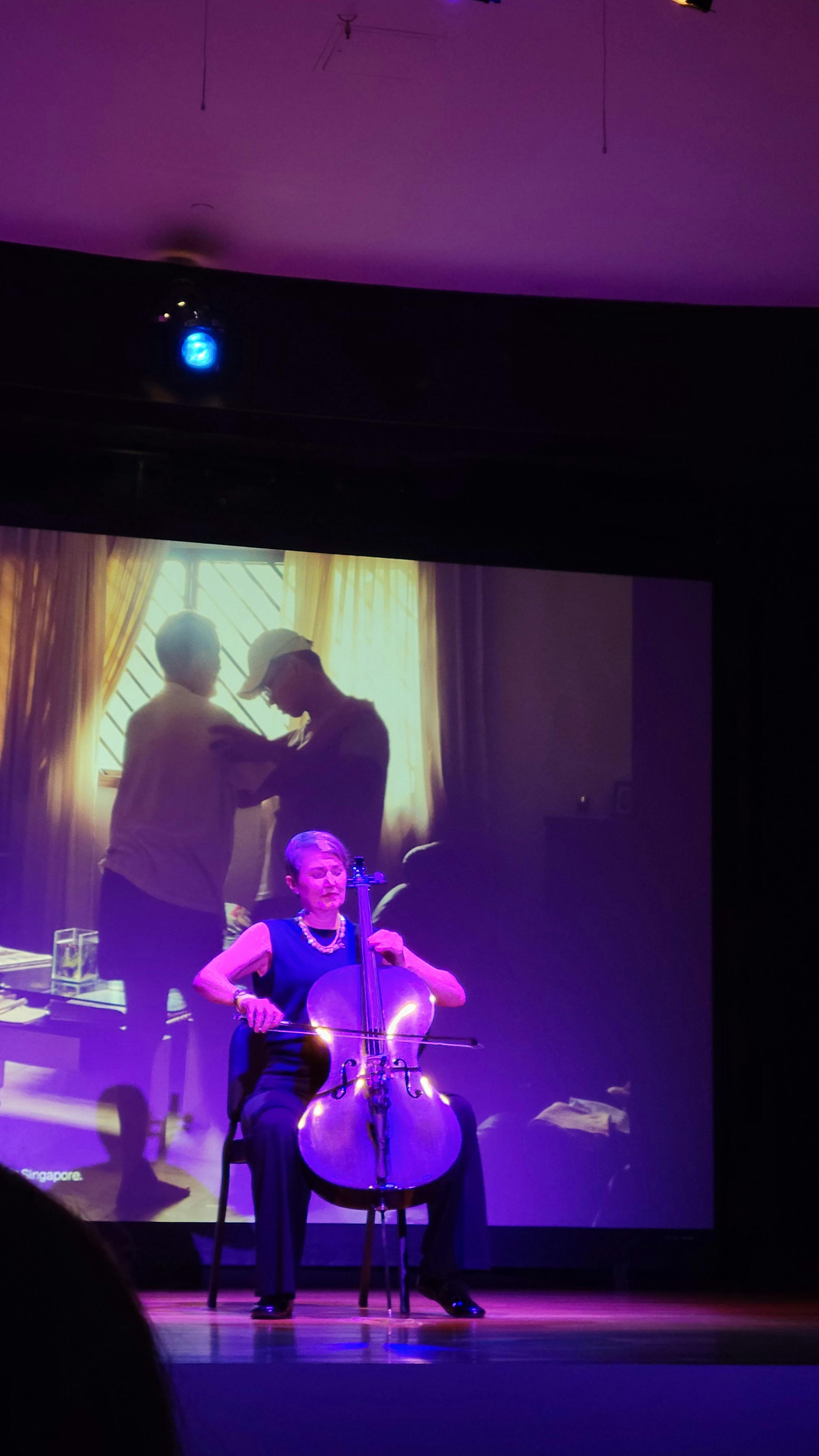 Left: In Photo: A cello performance by Stephanie Winters in front of one of the featured images in the photo essay. Photo Credit: Jennifer Kuo. Middle: In Photo: The set-up of the well-being concert at Carnegie Hall. Photo Credit: Jennifer Kuo. Right: In Photo (left to right): Dr. Nisha Sajnani, Dr. Tyson Bourdeaux, Dr. Nermica Sarcevic, Akhila Khanna, and Larissa Trinder at the Bronx event. Photo credit: Jennifer Kuo