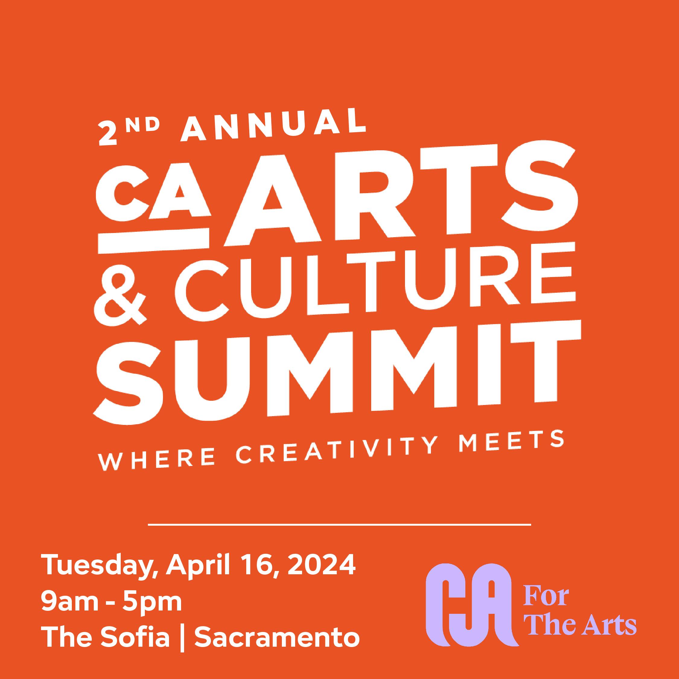 We are pleased to announce that the 2024 CA Arts & Culture Summit has officially SOLD OUT and we are no longer able to accommodate any waitlist requests. Thank you for your support!
